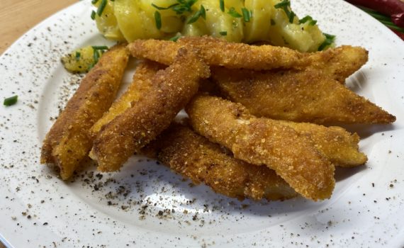 ein Hochgenuss für Spargelfans   Pro Person ca. 2 St. möglichst dicken Spargel 1 Ei Gewürze wie: Pfeffer, süßes o. scharfes Paprikapulver, Salz, Kräuter aus dem Garten, 1 TL Öl evtl. Chili-Pfeffer-Öl, Paniermehl grobes Maispaniermehl, 5 EL Öl für die Pfanne. Den Spargel schälen, in der Länge die Stange halbieren, […]